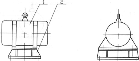 結構如圖1所示。由振動電機(1)、底座(2)兩部分組成。振動電機和底座由螺栓緊密地固定為一體,由于底座堅固地安裝在料倉壁上,這樣就構成了單質點定向強迫振動系統。